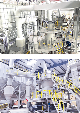 CLUM 系列超细立式磨粉机主要由电动机、减速机、磨轮装置、碾盘装置、加压装置、选粉机、进料装置、油站、主机、电控系统等部分组成。条超细粉生产线。